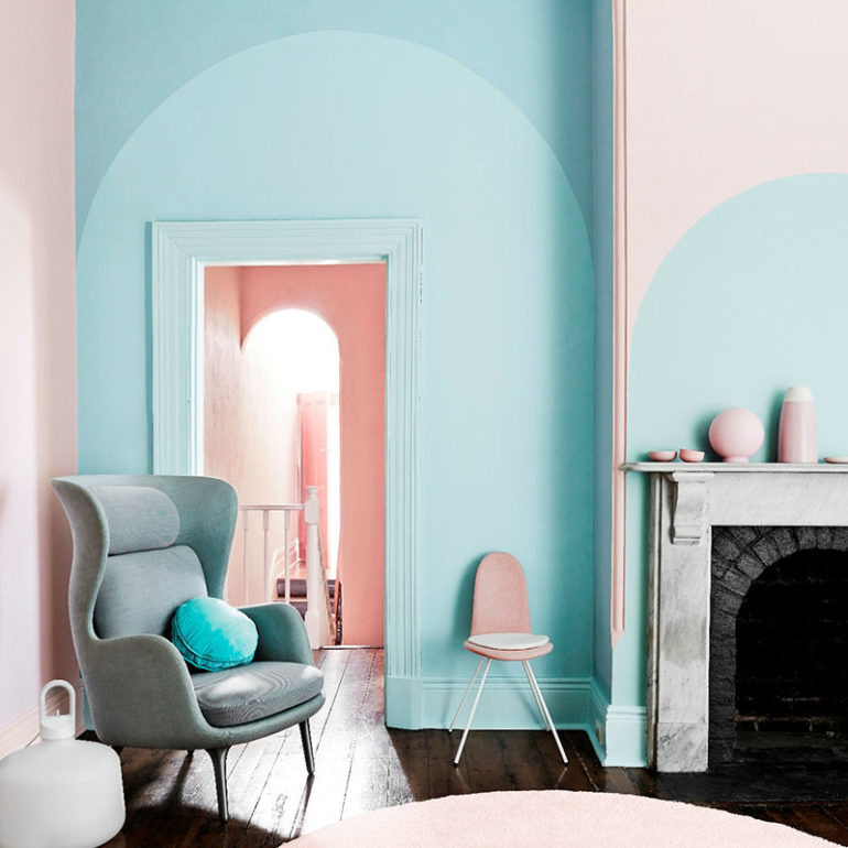 Για διαμερίσματα ανοιχτού σχεδιασμού ή που απλά διαθέτουν πολυχρηστικά δωμάτια, το βάψιμο του τοίχου μπορεί να λειτουργήσει όπως τα χαλιά διαχωρίζοντας τις χρήσεις σε ένα μεγάλο χώρο. Έτσι σε ένα μεγάλο σαλόνι, μπορείς να διαχωρίσεις την τραπεζαρία από το καθιστικό, την κουζίνα από το σαλόνι εφόσον βρίσκονται σε ενιαίο χώρο κ.ο.κ. Εδώ το πλούσιο μπλε μαζί με το ροζ κάνουν την διαφορά, τονίζοντας τις αρχιτεκτονικές γραμμές.