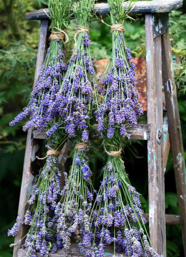 Η δεύτερη φυσικά distressed σκάλα η οποία χρησιμεύει πλέον ως αποξηραντήριο. Στην περίπτωσή μας αφέθηκαν να αποξηρανθούν άνθη λεβάντας.