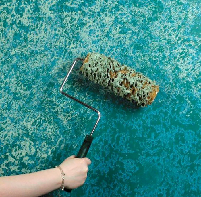 Ας αρχίσουμε με κάτι που το έχεις δει. Έχουμε την ήδη βαμμένη επιφάνεια (ή την παλιά μας) και εφαρμόζουμε διαφορετικό χρώμα βαφής. Πριν στεγνώσει η νωπή βαφή, την αφαιρούμε κατά τόπους με το σφουγγάρι ή εναλλακτικά βουτάμε το σφουγγάρι στην μπογιά και εφαρμόζουμε το δεύτερο χρώμα σπογγιστά! Εκτός από σφουγγάρι υπάρχει και το ρολό σφουγγάρι για πιο ομοιόμορφη εφαρμογή.