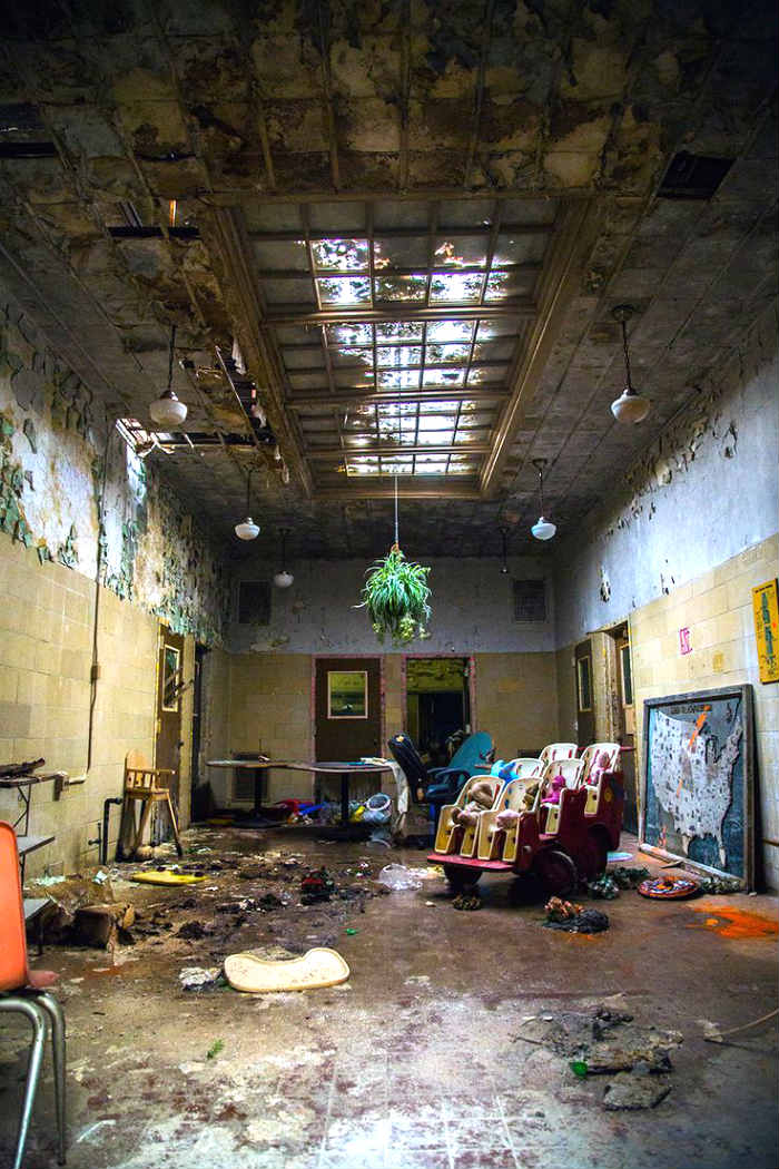 Στις δύο φωτογραφίες βλέπετε ένα σανατόριο λίγο έξω από τη Νέα Υόρκη. Στην πάνω αίθουσα βρίσκονταν οι ασθενείς, ενώ κάτω ήταν η αίθουσα συνεδριάσεων των ψυχιάτρων. Ευτυχώς δεν βρήκαμε φωτογραφία της αίθουσας ηλεκτροσόκ!