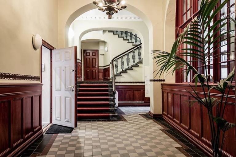 Πρέπει βέβαια να σημειώσουμε, πως ακόμη κι οι κοινόχρηστοι χώροι του κτιρίου, στο ισόγειο του οποίου βρίσκεται το συγκεκριμένο διαμέρισμα, είναι ιδιαίτερα εντυπωσιακοί και περιποιημένοι, αποπνέοντας τον αέρα μιας άλλης εποχής!