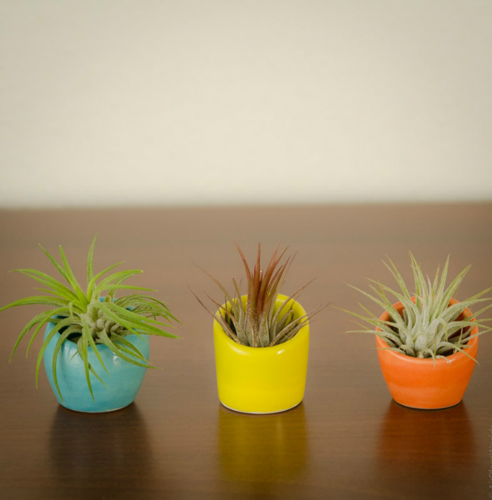 Θα χρειαστείς ένα γλαστράκι 2 εκατοστά ύψος, με δύο εκατοστά διάμετρο ανοίγματος. Ρώτα σε φυτώριο (ζήτα γλαστράκι για υδρόφυτα), pet shop με είδη ενυδρείου ή κατάστημα με είδη χόμπι. Επειδή όμως κατά πάσα πιθανότητα θα το βρεις στο χρώμα του πηλού (όπως εμείς), μπορείς να το βάψεις σε όποιο χρώμα θες, θα βάλεις λίγη άμμο (προαιρετικά) και θα τοποθετήσεις μετά το αερόφυτο.