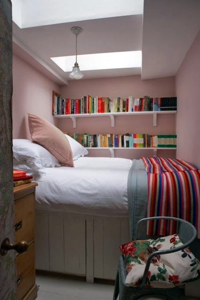 Στο πραγματικά μικρό ροζ προς σάπιο μήλο υπνοδωμάτιο, το χρώμα δεν επηρεάζει τις διαστάσεις οπτικά, ενώ προτιμήθηκαν πέρα από το άσπρο δεκάδες χρώματα. Τόσο από το μαξιλάρι και την κουβέρτα, όσο και τα χρώματα που προκύπτουν από τα βιβλία. Θα το βρεις στην Vechro ως S0510-R20B