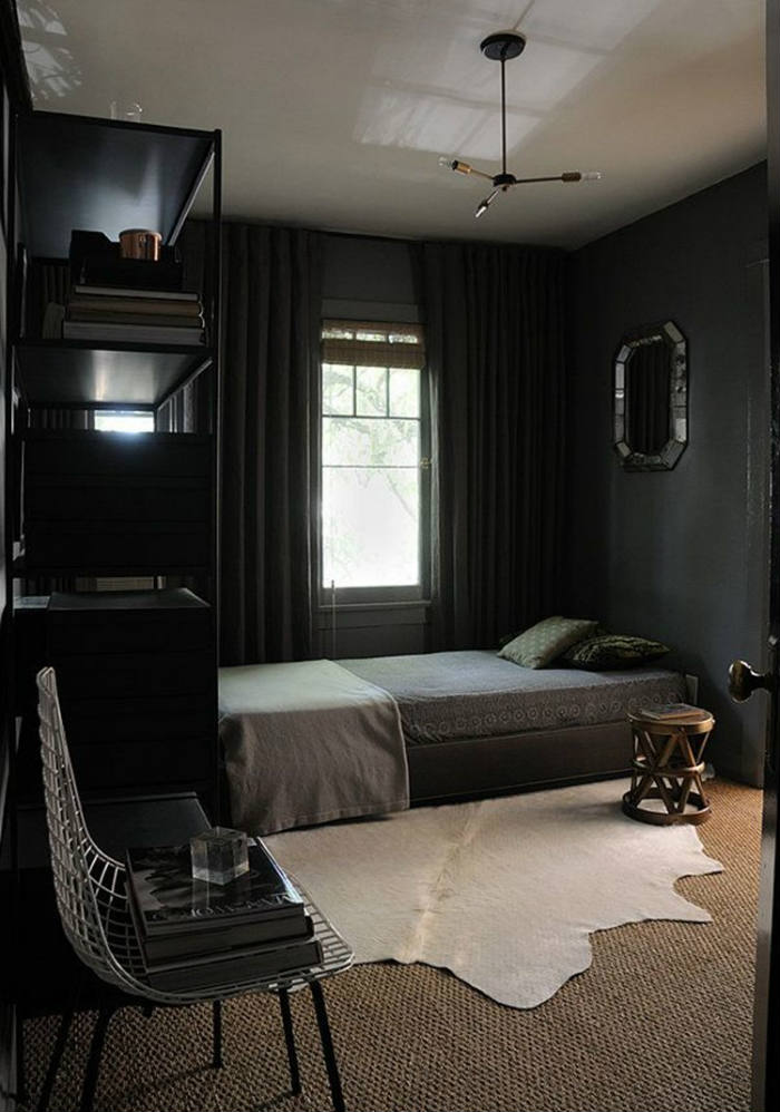 Μιας και καταλήξαμε στο αουτσάιντερ μας, το μαύρο θεωρείται το χειρότερο χρώμα για μικρό χώρο. Εκ του αποτελέσματος βλέπουμε, ότι μπορεί μεν το λευκό να κάνει έναν χώρο να φαίνεται μεγαλύτερος, χωρίς όμως να σημαίνει ότι το μαύρο έχει αντίθετα αποτελέσματα! Εδώ προτιμήθηκε γκρι-μαύρο στον τοίχο και πολλές αποχρώσεις του ανθρακί και του γκρι στον χώρο.