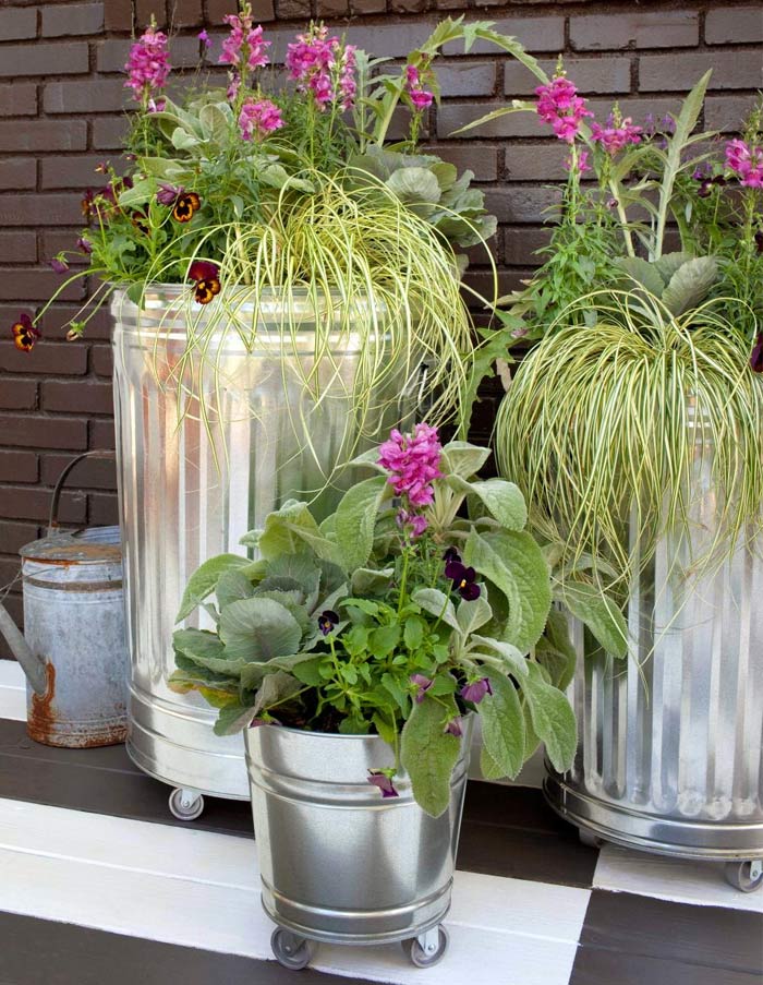 Ο μεταλλικός κάδος σκουπιδιών σου είναι πλέον άχρηστος; Τοποθέτησε του ροδάκια και προαιρετικά βάψτον στο χρώμα της αρεσκείας σου. Άνοιξε 3-4 τρύπες με τρυπάνι μεγέθους 10 και έχεις έτοιμη την πιο προχωρημένη μεταφερόμενη γλάστρα.