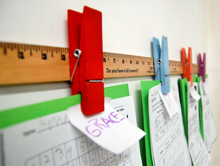 Μπορείς να φτιάξεις μια κατασκευή σημειώσεων, χρησιμοποιώντας ένα παλιό ξύλινο χάρακα και κολλώντας επάνω του ξύλινα χρωματιστά μανταλάκια. Έτσι έχεις ένα ιδιότυπο πίνακα σημειώσεων (εκπληκτικό και για σχολεία), με σημειώσεις, αγγαρείες, λογαριασμούς του τρέχοντος μήνα κ.ο.κ. Την ίδια στιγμή μπορείς να φτιάξεις ένα αντίστοιχο για τις ζωγραφιές του παιδιού σου!