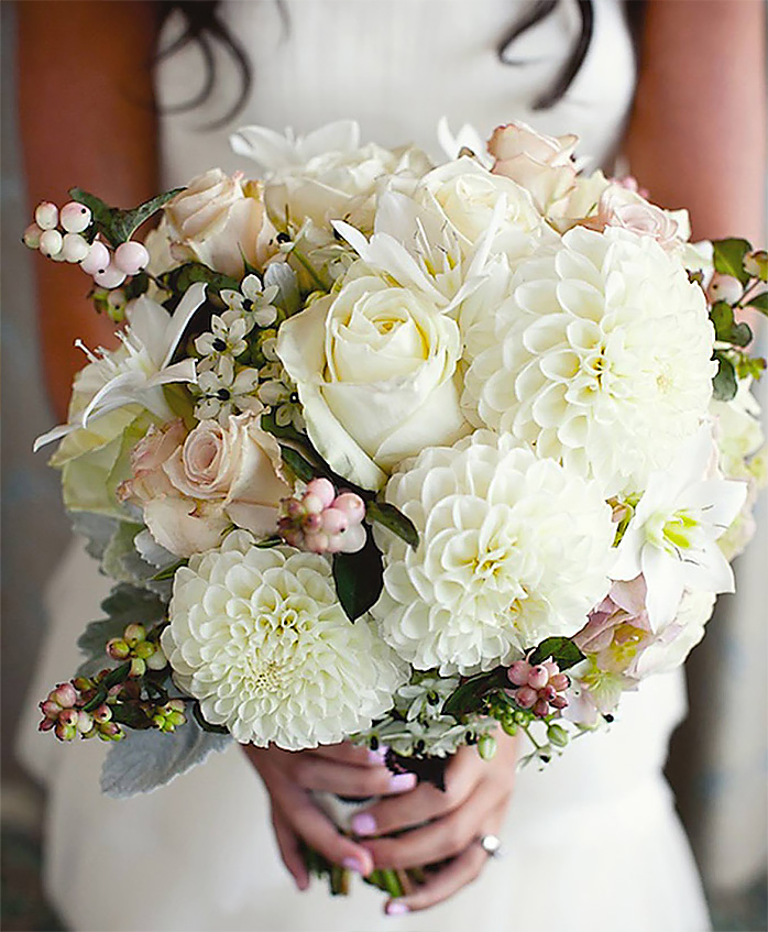 Οι Ντάλιες είναι βολβοί που φυτεύονται εύκολα και είναι σούπερ ανθεκτικές. Θα τις βρεις σε διάφορα χρώματα (πραγματικά ατελείωτη χρωματική παλέτα), με τις μωβ, τις μπορντό, τις κοραλί και τις φούξια να κλέβουν την παράσταση! Θα δώσουν ένα πιο αλέγκρο τόνο στην νυφική ανθοδέσμη και θα γεμίσουν τις φωτογραφίες σου με χρώμα. Εναλλακτικά χρησιμοποίησε τις εντυπωσιακές λευκές!