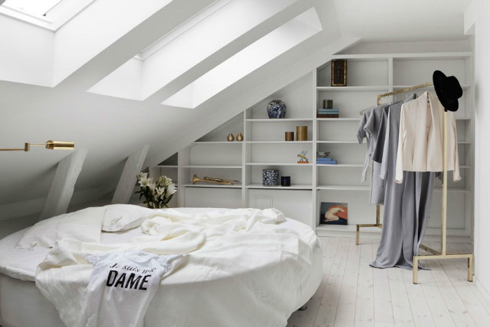 Εδώ έχουμε παιχνίδι με ρουστίκ και βιομηχανικό και μοντέρνες πινελιές. Δεν μπορείς να ξεχωρίσεις κάτι, το δωμάτιο έχει εξαιρετικό φωτισμό από τους φεγγίτες και όλα τα έπιπλα είναι από designers. Τόσο απλό στην εκτέλεση, αλλά ταυτόχρονα τόσο εξεζητημένο δωμάτιο…