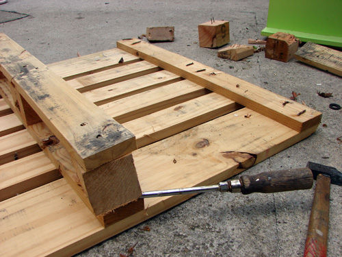 Το πρώτο βήμα που πρέπει να κάνουμε είναι να αφαιρέσουμε τα κομμάτια ξύλου που δίνουν ύψος στη παλέτα στη κάτω πλευρά της.