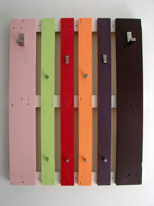 Τα υλικά που θα χρειαστούμε είναι μια παλέτα, χρώματα ειδικά για ξύλο, κρεμάστρες, τρυπάνι, κατσαβίδι, πινέλα και φαντασία.