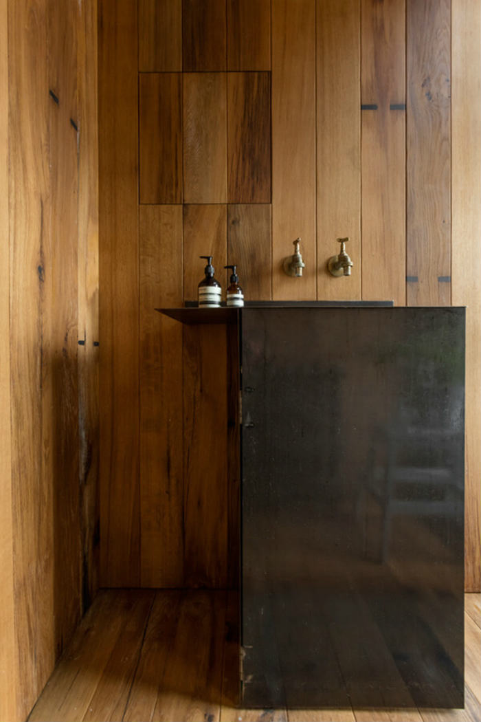 Στον μόλις 15 τετραγωνικών χώρο όπου ήταν η κουζίνα, κινείσαι από το τατάμι στην αίθουσα όπου ντύνεσαι και ξεντύνεσαι πριν και μετά το μπάνιο και από εκεί στην γρανιτένια μπανιέρα. Ο νιπτήρας είναι κατασκευασμένος από μέτριας σκληρότητας ατσάλι όπου με την χρήση θα γίνει αυτό που ονομάζεται στην γιαπωνέζικη αρχιτεκτονική wabi-sabi (ελαφρώς φθαρμένο).