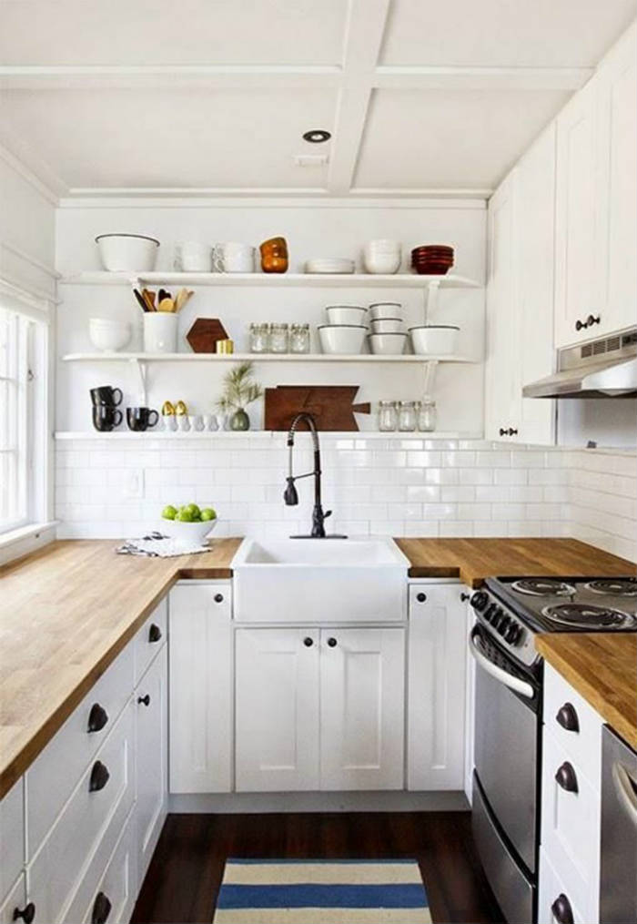 Οι μικρές κουζίνες δεν έχουν χώρο για χάσιμο! Σε μια μικρή κουζίνα σχήματος Π ή U (αν προτιμάς) τα συρτάρια και τα ντουλάπια πάνω δεξιά καλύπτουν τις ανάγκες σε επιθυμητό αποθηκευτικό χώρο, οπότε δεν υπάρχει λόγος για πάνω ντουλάπια στον τοίχο του νιπτήρα.