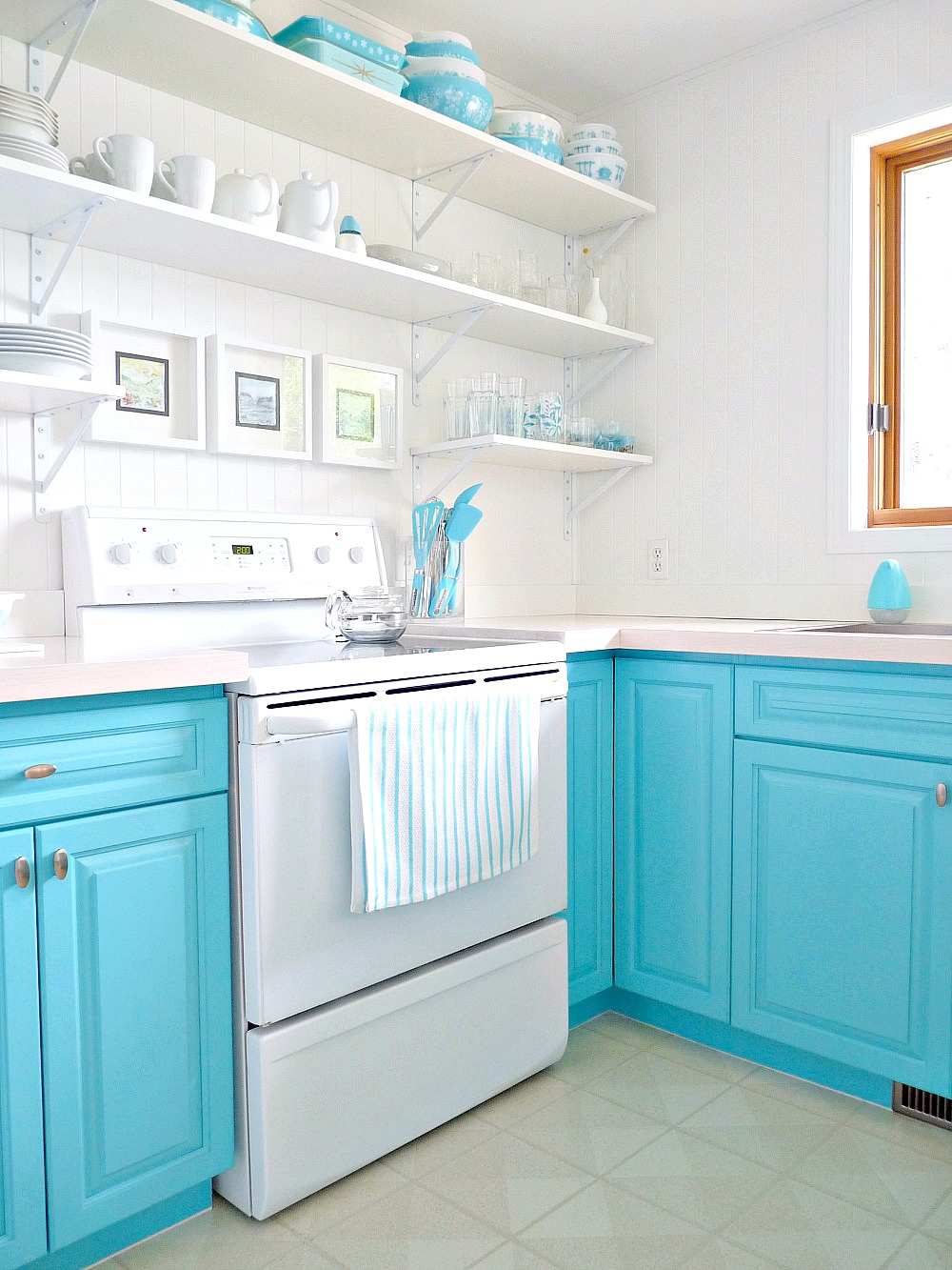 Τα χαμηλά ντουλάπια βάφτηκαν τυρκουαζ (Και είναι τόσο ταιριαστά με τα κεραμικά τους!)