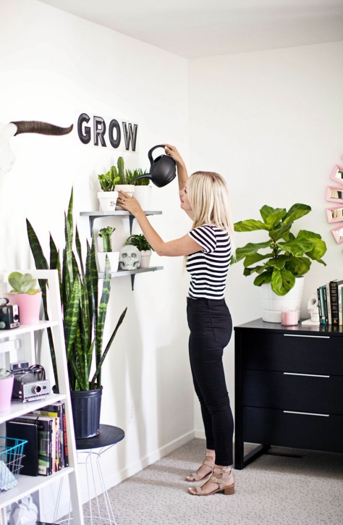 Με πρωτότυπα αντικείμενα, σωστά τοποθετημένα ώστε να αναβαθμίζονται τόσο τα ίδια, όσο και τα έπιπλα πάνω στα οποία πατάνε. Μα το βασικότερο όλων που μου κίνησε το ενδιαφέρον για να σου δείξω αυτό το δωμάτιο, είναι οι γωνιές με τα παχύφυτα, που θα είχα, αλήθεια, κι εγώ στο δωμάτιό μου, αν δεν μου είχαν σφηνώσει την ιδέα στο μυαλό, απο παιδι ακόμη, πως τα φυτά στο υπνοδωμάτιο, μας ρουφούν το οξυγόνο όταν κοιμόμαστε, γεγονός το οποίο με κάνει να τα βλέπω σαν σαρκοφάγα φυτά, φερμένα από τροπικά δάση κι απάτητες ζούγκλες, βγαλμένα από μυθιστορήματα της Αλιέντε.