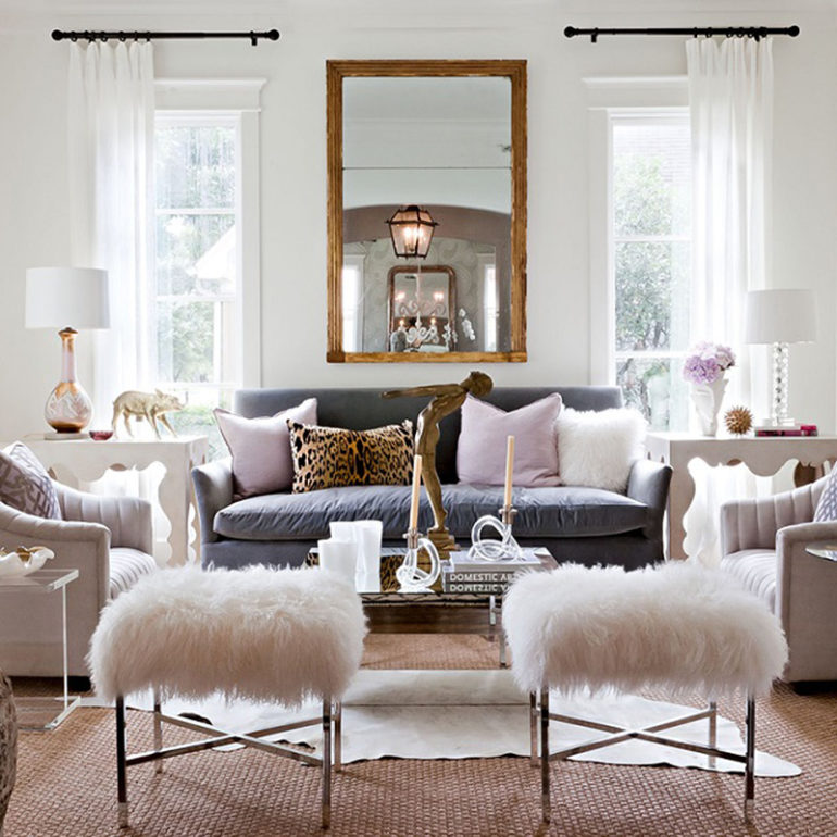 Τα πάντα σε αυτό το σαλόνι είναι ευθυγραμμισμένα με την μόδα του 2021 και του 2022. Παρόλα αυτά έχει επίσης μια κλασσική αίσθηση που δεν θα χρειαστεί να αλλάζει συνέχεια. Τι να πρωτοζηλέψεις; Τα σκαμπό ντυμένα με γούνα, τον καθρέπτη ανάμεσα στα παράθυρα ή τα χαλιά σε στρώσεις;