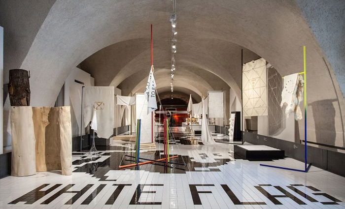 Λευκή σημαία. Οι Ιταλοί προτίμησαν μια διαδραστική εγκατάσταση, αυτή της λευκής σημαίας ως σύμβολο της παγκόσμιας εκεχειρίας. Συμμετείχαν 20 καλλιτέχνες και κάθε μέρα έφευγε μια λευκή σημαία από τον κεντρικό χάρτη και ένα αντικείμενο έπαιρνε την θέση του στην εγκατάσταση. Την ημέρα λήξης της έκθεσης όλα τα αντικείμενα είχαν πάρει την θέση τους και όλες οι λευκές σημαίες βρίσκονταν εκτός χάρτη.