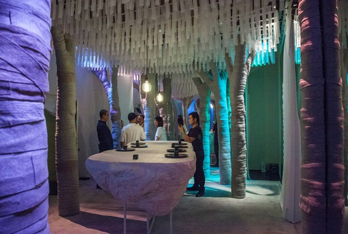 Πολυεπίπεδη εγκατάσταση που εορτάζεται η διαφορετικότητα σε ένα διάκοσμο δάσους! Αποτελεί αναφορά στο βιβλίο του Thomas More του 1516 για την Ουτοπία και περιγράφει το δείπνο.