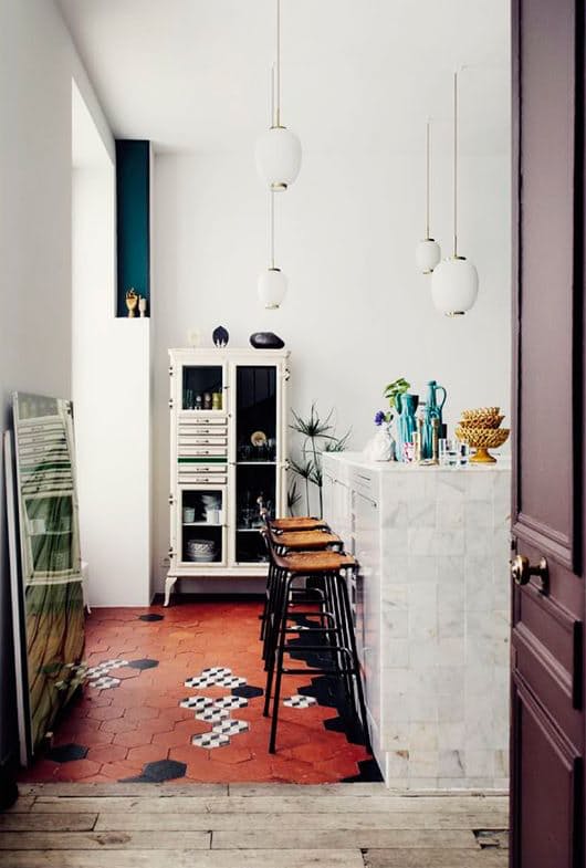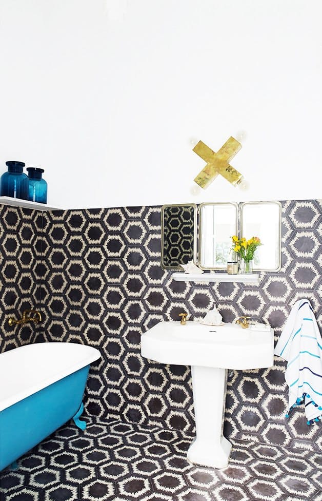 Πλακάκια με κύκλους σε είσοδο σπιτιού συμπληρώνουν το ολόλευκο στυλ!Ασπρόμαυρο τσιμεντένιο πλακάκι που τοποθέτησε η διακοσμήτρια Jessica Helgerston (όχι η ίδια!) σε κουζίνα.