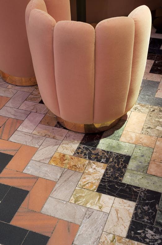 Το εστιατόριο Sketch στο Λονδίνο επένδυσε το πάτωμα με διαφορετικά πλακίδια από μάρμαρο.Πλακάκια deco από τσιμέντο σε στυλ λεπιών με εξαιρετικό αποτέλεσμα!