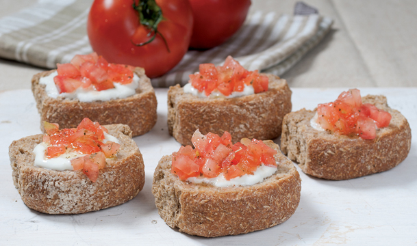 Θα χρειαστείτε: 4 μέτριους ντάκους ολικής αλέσεως 2 μικρές ντομάτες 180 γρ. τυρί φέτα light (11-13% λιπαρά) 4 κ. σ. …